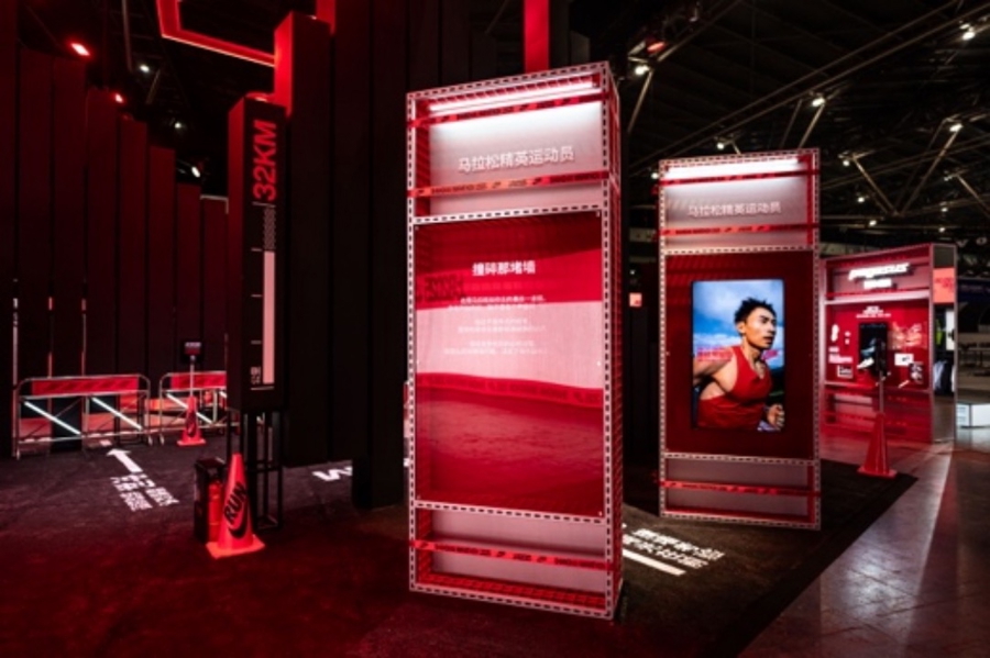 展区内还创新设置试炼时刻互动区,呈现跑者们的试炼宣言,激发内心斗志;更推出个性化专属导览服务,由耐克上马配速员全程引领,深入解读耐克跑步文化的精神传承。